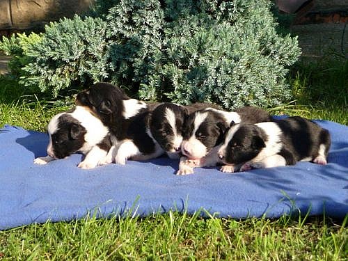 Border kolie- štěňátka s PP, 4 černobílé a 1 trikolorní, matka: By-way Alkyra DKK 0/0, CAJC, LA 1, ZVOP ( o: A3 CH. CH CZ, SK x m: A3 CH, ZPOP 1) otec: Filip ze Skalistých hor DKK 0/0, DNA CEA NORMAL, r. CAC, LA 3, ZOP, ZPU 1 (o. CAJC, CAC, LA 2, ZVOP, m: CAC, r.CAC) U štěňátek je předpoklad výborného exterieru a skvělých pracovních povah, vhodných k agility i pasení.Cena 8000 Kč www.eby.ic.cz , e-mail: esobonatom@seznam.cz, tel: 606689149