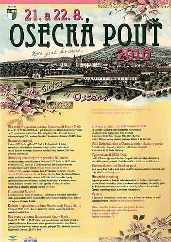 V rámci velkých Oseckých slavností pořádá Svaz chovatelů prodejní výstavu drobného zvířectva (králíků,holubů,drůbeže,exotického ptactva,akvarijních ryb,terarijních zvířat,pavouků a chovatelských potřeb) v areálu chovatelů ve dnech 21 a 22 Srpna . Informace na telefonu: 737 063 421
