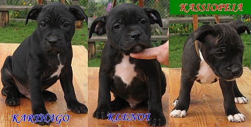 - Nabízím na prodej 2 pejsky a 1 fenku s PP, barva černá a žíhaná, již k odběru, nar. 13.08.2010. Otec import, CAC, CAJC ... Matka ze zahraničního krytí, Junior championka, Klubová šampionka, 4x CACIB, BOB, 10x CAC, 5x CAJC. Samozřejmostí je kupní smlouva, chov.servis, balíček pro štěně do začátku, pravidelné očkování a odčervčení, čip a EUpas. Více info na tel. 607 965 509, www.staffkomas.czrn