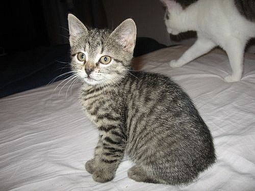 Nabízíme velice kontaktní koťátko mazlené dítětem. Samo papá granulky i kapsičky pro koťátka sebou je dostane také.