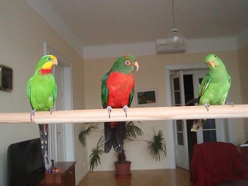 Tři velmi ochočení, ručně dokrmení papoušci: papoušek královský ( DNA samec), papoušek nádherný ( endoskopie samec ) a papoušek červenokřídlý ( endoskopie samec ). Všichni přilétnou na ruku, na rameno, nechají se nosit na rameni, nechají se pohladit a držet v dlani za záda. Jejich fotky a současná videa z 27.2.2011, jak hodně jsou ochočení, najdete na www.parrots.cz. Mail: papousci@parrots.cz Mobil 736 171 020 od 9 do 23 hod. SMS nečtu. Při cvičení papoušků mám vypnuté zvonění. Upřednostňuji telefonáty.