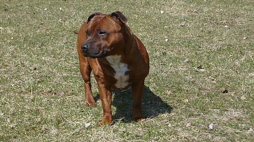 Nabízím zlatá štěňátka Stafbulíků s PP,2fenky a 3 pejsci. Oba rodiče L-2-HGA, HC – clear. Otec úspěšný na výstavách. Předpoklad pěkného exteriéru. Štěňátka jsou odchována doma s láskou, kontakt s dětmi a jinými psy. Při odběru budou očkovaná, čipovaná, několikrát odčervena + europas. Do nového domova si odnesou balíček. Stálý kontakt vítán. Nezávazná návštěva vítána. Více informací na tel: 724510262 nebo e-mail: zdenkamechurova@seznam.cz