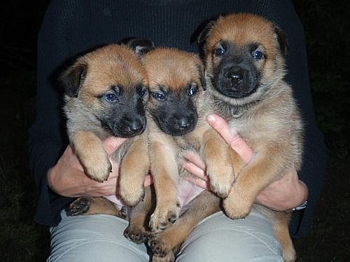 Prodám štěňata Belgického ovčáka Malinois s PP, po pracovně vedených rodičích. Oba rodiče mají vrcholové zkoušky, povahový test 100 bodů. Výborní aportéři a tvrdí obranáři. Otec: Vasil Bono Campo, RTG 0/1, IPO1, IPO2, IPO3, účastník mnoha vrcholových soutěží MR a MRBO. Matka: Mischa KORZÁR, RTG 0/0, výborná 1 CAC, IPO1, IPO2, IPO3, ZVV1, ZVV2, ZVV3. Předpoklad výborných pracovních vlastností a chutí do práce. Štěňata (5 holek a 4 kluci) se narodila 21.4.2011, odběr kolem 11.6.2011.