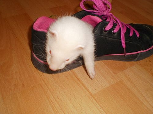 Prodám mláďě fretky, 2,5 měsíce staré, Albín - bíly s červenými oči. Odběr možný ihned v Brně. Sameček i poslední samička. Moc pěkná, dobře krmená. Naučená na záchodek i lidskou ruku. Možnost nezávazné prohlídky kdykoliv v týdnu po předchozí domluvě. Více fotek pošlu na požádání.