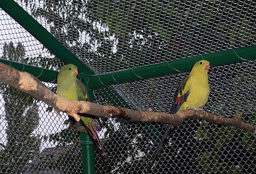 Prodám nepříbuzný čtyřletý pár papoušků horských (kouřových). Samec samici krmí, pár je ochotný zahnízdit - z časových důvodů však nedostal potřebné prostředí k zahnízdění. Papoušci jsou celoročně ve venkovní voliéře, zvyklí na zimu. Prodávám z časových důvodů - rušení chovu.
