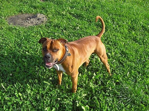 Prodám štěňátka bandoga narozená 16.7.2011.rnŠtěňátka jsou 2x odčervena a nyní mají v průměru 8kg. Jsou hnědá s bílou náprsenkou.rnRodiče jsou vyrovnané povahy, klidní a přátelští.rnTito psi jsou skvělí hlídači a vždy věrní svému pánovi. Jsou vhodní k dětem.