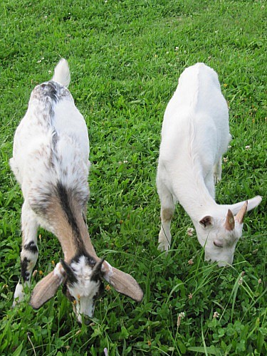 Prodám 2 tříměsíční kozlíky pouze na chov. Tmavý burský otec a bílá krátkosrstá koza. Jeden kozlík je čistě bílý a druhý je velmi pěkně strakatý. Oba mají rohy, jemnou srst, jsou přítulní a mazliví. Odběr možný v říjnu. Cena je 500 kč.rn