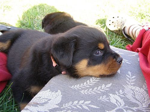 Nabízím krásná štěňátka s PP hodným a zodpovědným lidem.Další info po tel 777172211 nebo donik.cb@seznam.cz Štěňátka budou k odběru v září.Ráda všem do začátku poradím o výchově,zkušenosti s rotvajlery přes 20 let. Štěňátka budou očkovaná ,odčervená a tetovaná jsou odchovaná v rodině+kotec s celodenní péčí.Vyrůstají v pohodovém prostředí ,kde se pohybuje více dospělých psů,lidí a dětí. Rodiče jsou neagresivní,vyrovnané povahy a krásného exteriéru rn