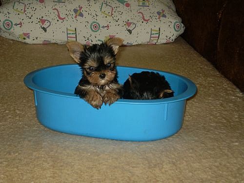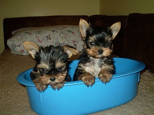 Prodaváme štěnatka yorkšírů bez pp.Stáří štěnatek 7týdnů3xřadně odčervená+očkovaná,kupírovaný ocasek,učená čůrat na pap.podložku oba rodiče vlastníme váha rodičů do 2,5kg.Odchovaná v domacím prostředí s dětmi.Naučená na granulky a masové kapsičky.Kupní smlouva a chovatelský servis je samozřejmostí.Nezavazná navštěva vítaná.Po dohodě možno dovézt.rn