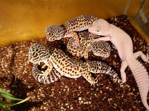 Prodám skupinu gekončíku sameček a 3 obyčejné samičky 2 roky sataré . Jsou v dobrém zdravotním stavu , perfektně žerou , nechají se krmit z ruky a jsou zvyklí na každodenní braní do rukou . Každá ze samiček již měla 3 snužky všechny byli v pořádku .vhdné pro začátečníky. Albínka není součástí prodeje.