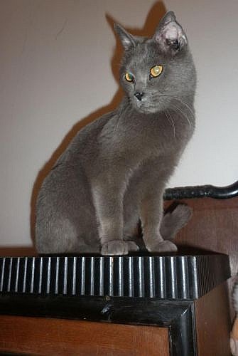 BERUNEK je čistokrevný modrý britský kocourek, kterému zemřela jeho milovaná panička. Zůstal v bytě ještě se svými dvěma dětmi osiřelý a smutný. O kočičky se sice staral paničky syn, ale nyní, vzhledem ke svému zaměstnání, tato povinnost již byla nad jeho síly, proto jsme se domluvili, že se kočičky přestěhují ke mně. Pán se s nimi smutně loučil, ale nedalo se nic dělat... Kočičky byly hodně hubené, v uších měly svrab, nebyly očkované. Navíc byly samozřejmě zpočátku velmi vyděšené a schované. Nejstarší Berunek, otec rodu, byl kupodivu ze všech nejodvážnější, ze skrýše brzy vylezl, pomalu se začal mazlit, nechá se již i pochovat, je čistotný a dobře papá. Již je odčervený, naočkovaný i kastrovaný, takže začíná hledat nový domov. rnJe to kocourek, který se samozřejmě nehodí ven, je zvyklý bydlet v bytě a hajat v posteli či na sedačce. Doma může být sám nebo s další kočičkou. Nejraději by odešel se svým černým synkem Kulíkem nebo modrou dcerkou Baculkou.
