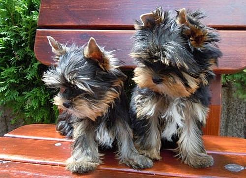 Prodám štěňátka Jorkšírského teriéra s PP pejska a fenku s pěkným rodokmenem, otec ICH. Oba v dospělosti malého vzrůstu cca 2kg, pěkné hlavičky s krátkými čumáčky. Předpoklad kvalitní srsti a pěkných barev. Štěňátka jsou tříměsíční, narozená 7.5.2012, čipovaná s pasem, očkovaná a odčervená. Vzhledem k velikosti ne na chov, cena fenky 11.000,-Kč a pejsek 10.000,-Kč. Web: www.yorkdemal.cz