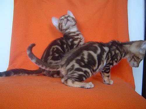 Prodam Bengálská kočka - zbarvení mramor kotata po predcich s pp, ciste testovany chov. Kotatka jsou odcervena, poprve naockovana jiz k odberu - obe pohlavi.
