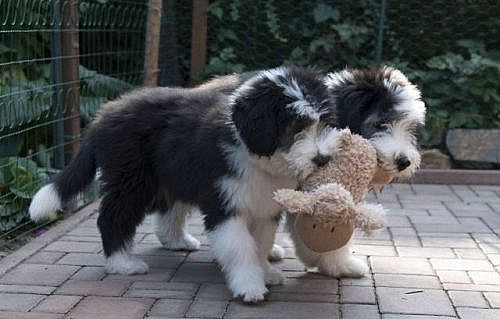 Prodám dvě krásná černobílá štěňátka ze zahraničního krytí. Vyrůstají v domku se zahrádkou v neustálém kontaktu s rodinou, milují děti. Mají velmi milou, mazlivou povahu. Jsou hezky stavěná, hodně osrstěná, standardně zbarvená. Jsou kompletně očkovaná a odčervená. Odběr ihned. Web: www.oldtapis.cz
