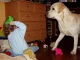 Máme doma od malinka papouška a labradora. Vyrůstají spolu již 7 rokem papoušek Rosela pestrá je od malinka vypouštěna z voliery a labrador je naučen ho zahánět jen v případě, že oklovává květiny. Nicméně je vidět přirozená žárlivost, která se projevuje hlavně na zvířecích hračkách. V momentě, kdy si papoušek hraje v balonkem, labrador mu ho vezme a drží si ho a nepůjčí. Navzájem na sebe neútočí, vzájemně se akceptují. Ale větší kamarádství mezi nima nevzniká. V každém případě ty dva pozorovat je lepší než sledovat film v televizi