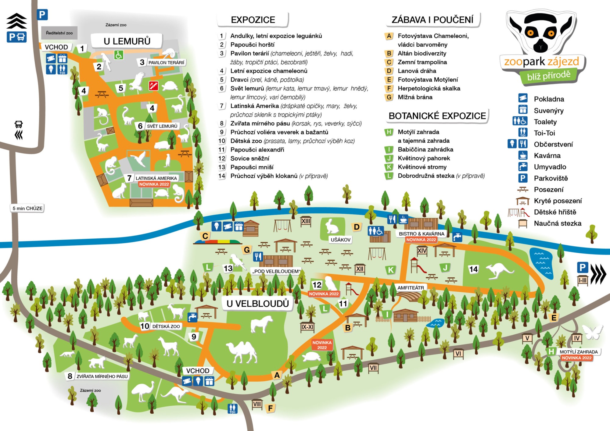 V rodinném Zooparku Zájezd zažijete zvířata opravdu zblízka. Zoo se nachází jen kousek za Prahou směrem na Kladno, v pravé české přírodě vedle Okoře v malé obci Zájezd. Spokojeně zde žije přes 100 druhů exotických a domácích zvířat. Mezi ty nejoblíbenější určitě patří skupinky lemurů s mláďaty, surikaty, rys ostrovid Blonďák nebo drzé veverky, které vám možná skočí i na hlavu. Bavit vás bude hledání strašilek a zkoumání našich “draků” – plazů v expozici Terária, kde je i největší veřejně přístupná kolekce chameleonů na světě.