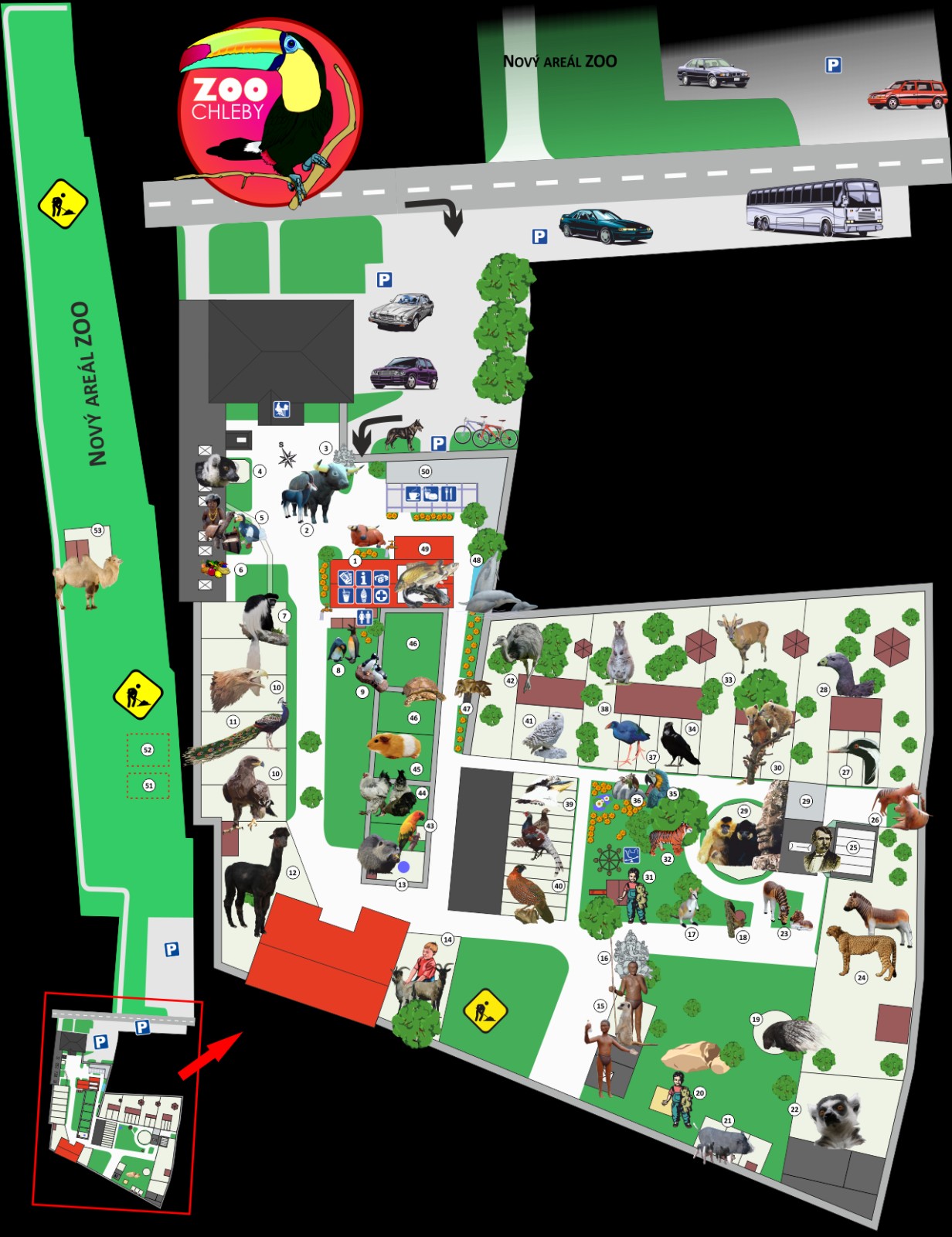 Zoo Chleby se neustále vyvíjí a mění, stále však zůstává návštěvnicky přívětivou. Vládne zde přátelská až rodinná atmosféra. K vidění je více než 420 zvířat ve zhruba 120 druzích. Zastoupeny jsou všehny skupiny od nejpočetnějších savců a ptáků, přes plazy a obojživelníky až po ryby a bezobratlé - ze všech kontinentů (kromě Antarktidy) a také množství rostlin (např. mnoho druhů bambusů).