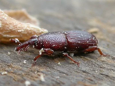 Pilous černý je nejobávanějším škůdcem obilí. Je smolně hnědočerný, nelétající brouk, velikosti 3-5 mm, patřící mezi nosatcovité, hlava je prodloužena v nosec. Krovky má lesklé. Proměnu má dokonalou.