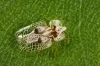 Dospělci kladou vajíčka na jaře na spodní stranu listů. Na přelomu léta se z vajíček líhnou nymfy, které koncem srpna přecházejí v dospělce. Dospělé ploštice sají, v závislosti na počasí, až do podzimu – nápadným pobytovým znakem této drobné ploštice jsou malé kupičky černého trusu přilepené na spodní straně listů. Na zimu zalézají do škvír pod destičkovitou kůrou, kde ve skupinách přezimují.