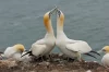 Na vejcích sedí oba rodiče. Střídání – zhruba po každých 24 hodinách - se děje po pozdravení, provázeném mnohými gesty. Začíná tím, že střídající pták odevzdá střídanému svazeček hnízdního materiálu. Následuje vytrvalé potřásání hlavou. Odlet se často zdaří jen tak, že pták poskakuje přes hnízdní okrsky sousedů. Aby jim dal najevo své mírumilovné úmysly, dívá se terej před odletem demonstrativně do oblak. Když musí párek terejů na krátký čas hnízdo opustit, ihned je sousedi rozeberou a zbourají.