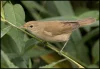 Pták dlouhý 12,5 centimetru. Jeho peří je hnědavé s rezavým odstínem. Rytmický zpěv je jednotvárný, s pravidelnou žvatlavou prostřední slabikou, přičemž každý tón se dvakrát či třikrát opakuje.