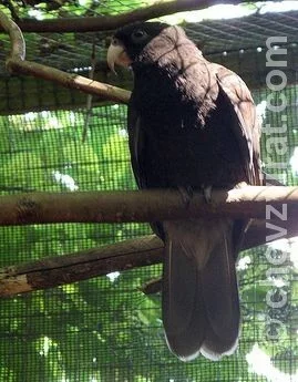 Velký papoušek unikátního zbarvení. Dospělí ptáci jsou hnědočerní, svrchu někdy poněkud šedaví. Spodní ocasní krovky jsou šedé, někdy s černými skvrnami. Přes střední ocasní pera jdou tmavé příčné pruhy. Zobák rohovinový, po pelichání spíše šedý. Duhovka hnědá, nohy tělově hnědé. Mladí ptáci jsou zbarveni více do hnědá, svrchu do kaštanova. Zobák má vaza velký šedý.