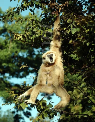 Tento druh, dříve nazývaný běloruký, má černou kůži v obličeji lemovanou bílou srstí a černé ruce a chodidla. Zbytek těla pokrývá hustá krémová až červená srst, vzácněji hnědá až černá. Dlaně a chodidla jsou lysé, kožovité a zaručují dokonalé uchopení. Velký palec je protistojný a dovoluje těmto lidoopům chodit vzpřímeně po větvích. Typickým pohybem gibonů je ručkování, odborně brachiace, která jim šetří energii, neboť tělo pracuje jako kyvadlo při dlouhých skocích mezi větvemi. Časně zrána samec a samice „zpívají“, což posiluje jejich vzájemné vztahy. Zpěv začíná obyčejně samice dlouhým, hlubokým, zvyšujícím se houkáním a samec odpovídá krátkými skřeky.