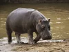 V létě se často hroši vyvalují v tůních vody ve velkých dočasných skupinách. V noci vycházejí na pastvu, ale příležitostně také požírají malé kopytníky nebo zdechliny. Dominantní samec se páří se všemi samicemi na svém území. Samice může rodit na souši i ve vodě.