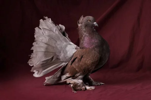 Plemenné znaky – silný, bohatě opeřený holub s vodorovným držením těla, ocas je lehce trychtýřovitý a vzpřímený, nohy krátce opeřené, s variabilními pernatými ozdobami hlavy.