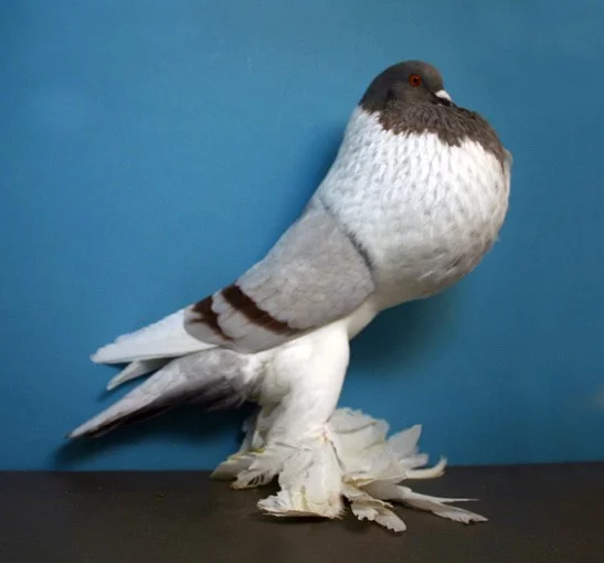 Plemenné znaky – zdatný, středně velký, přesto elegantní holub vzpřímeného držení těla, středně dlouhých opeřených nohou a hruškovitého a podvázaného volete.