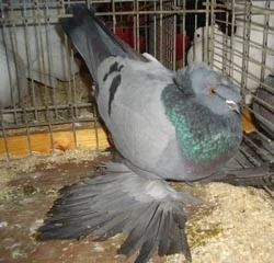 Plemenné znaky – velký, silný, bohatě opeřený holub s téměř vodorovným držením těla, s překrásně zdobenou hlavou, se silnými rousy a volným postojem tak, že jsou zřetelně vidět i supí pera.