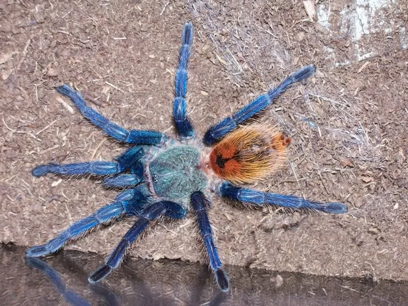 Anglicky: Greenbottle Blue Tarantula, Holandsky: Venezolaanse cyaanblauwe vogelspin