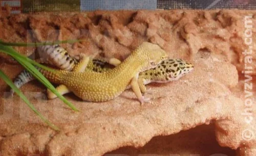 Nadchází po zimování, hned jakmile zvýšíme teplotu v teráriu. K páření připouštím samice nejdříve v době kdy dosáhnou hmotnosti min. 45 - 50 g. Tímto se vyhneme zbytečnému přetěžování samiček a minimalizujeme možnost problému při nebo po snůšce. Obvykle se mi gekončík noční začíná pářit na konci ledna a začátku února. Nelekněte se když samec začne jak o život vrtět ocáskem a začne na samici dorážet - je to součástí páření a není čeho se bát. Samec se při samotném aktu zakousne samičce za krk , podsune ocasem pod ní a dojde k samotnému aktu započetí: Celá akce trvá jen pár sekund, ale za to se opakuje několikrát po sobě a v průběhu celého roku kromě zimování.